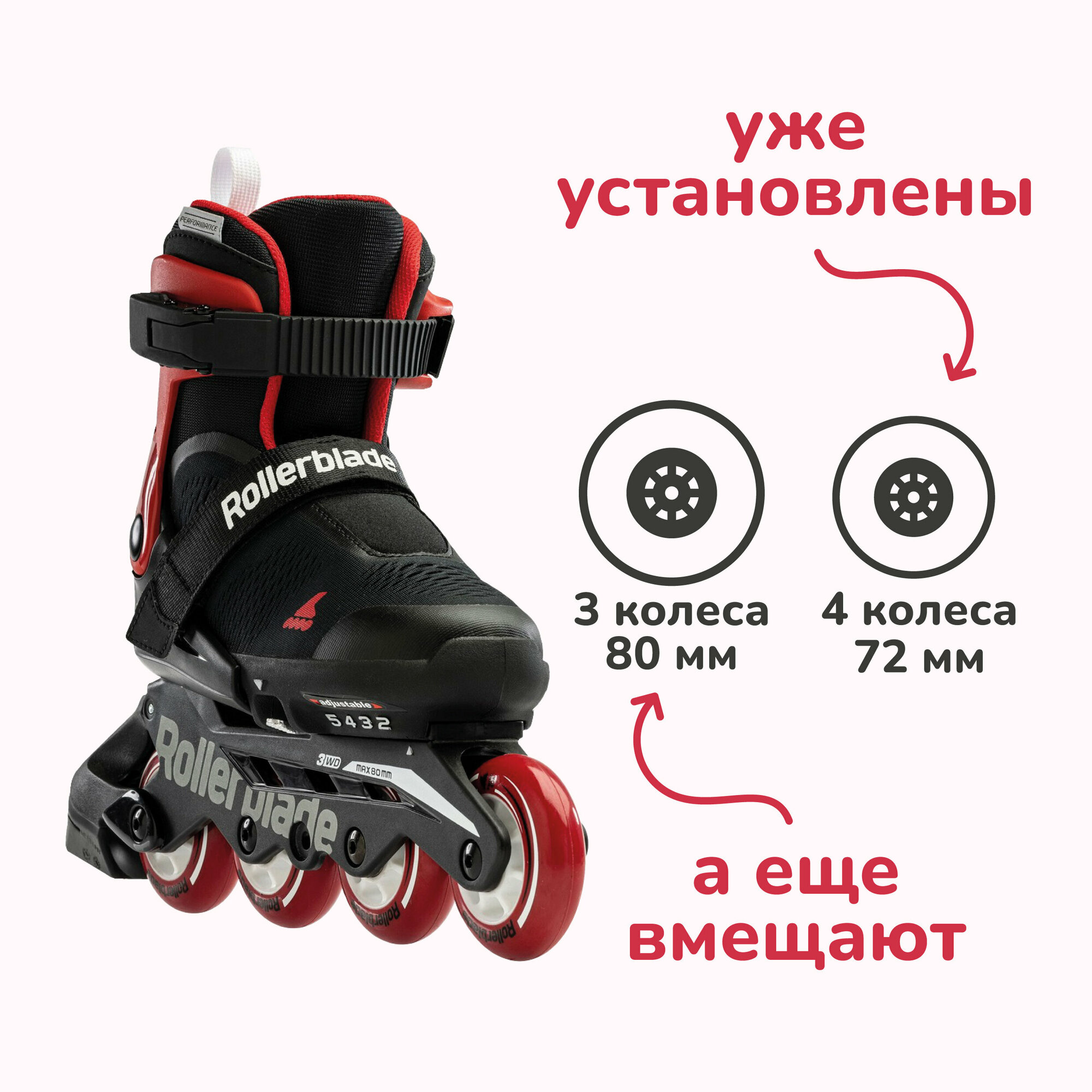 Детские ролики Rollerblade Microblade Free - 2022 Black/Red р. 36.5-40.5 интересное:
