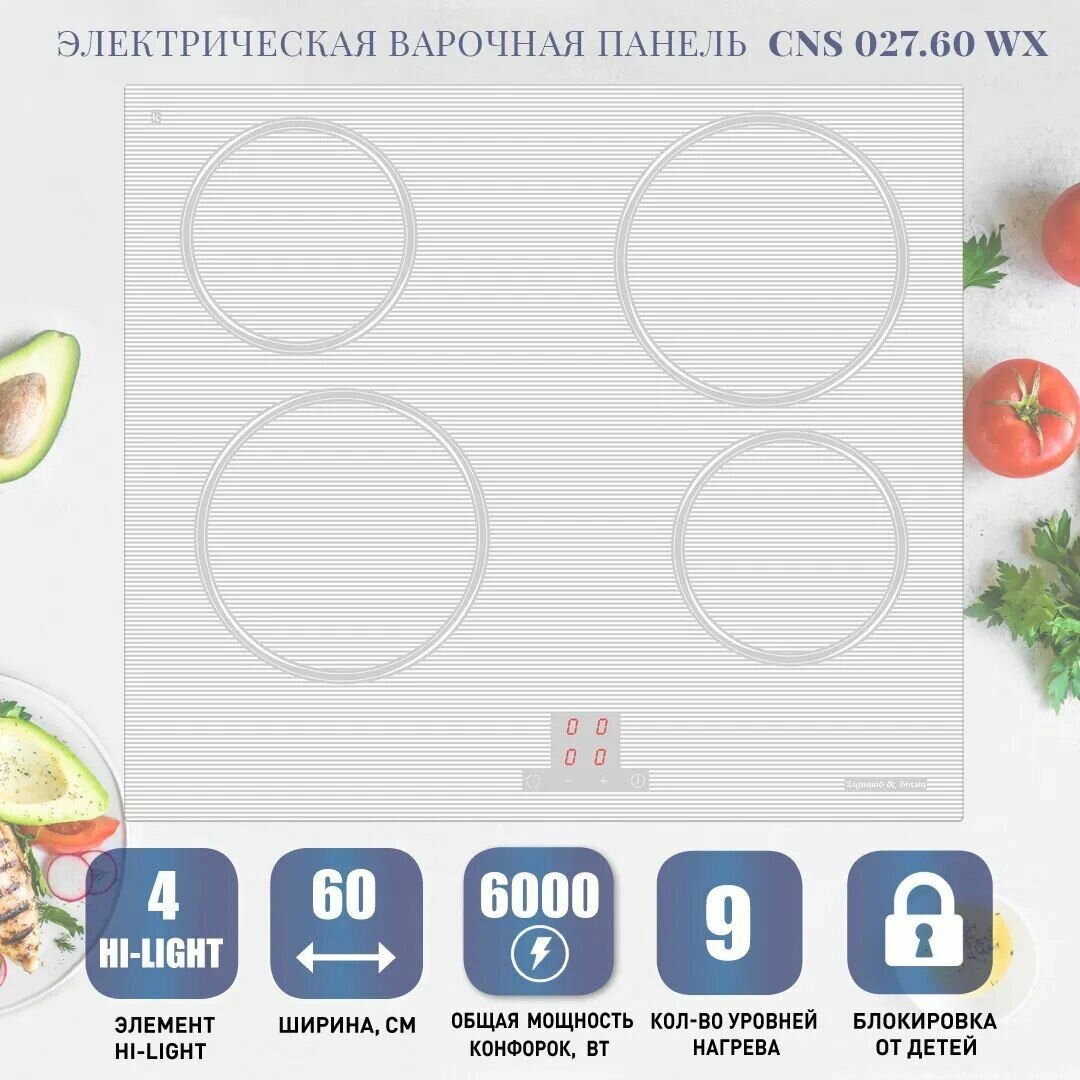 Варочная панель элетрическая Zigmund&Shtain CNS 027.60 WX /белая, 4-х комф., сенс. упр./Италия