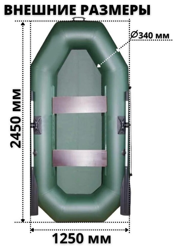 | Внешние размеры лодки (Ш х Д) | 125 х 245 см |