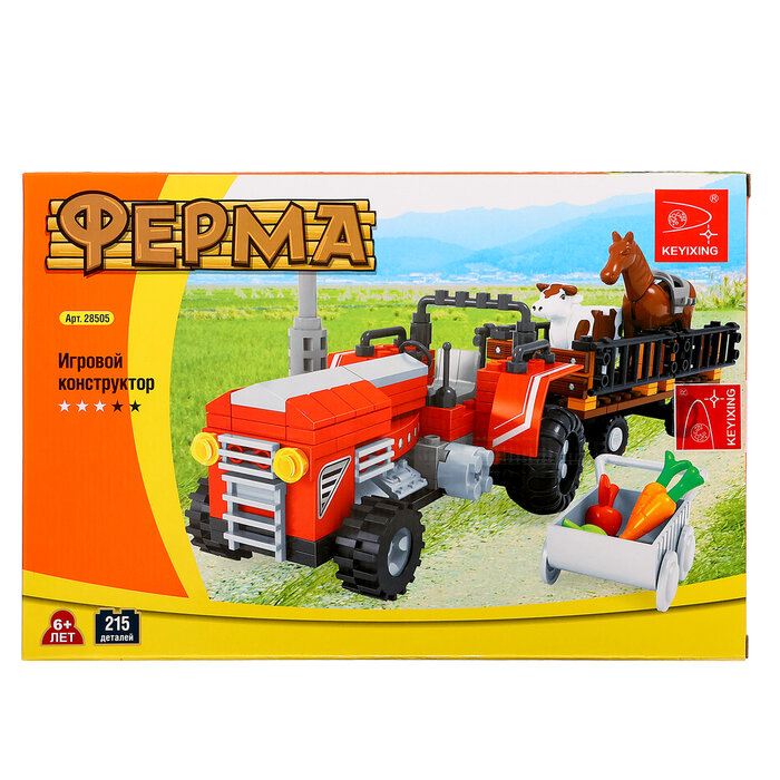 KEYIXING Конструктор Ферма "Трактор с животными", 215 деталей