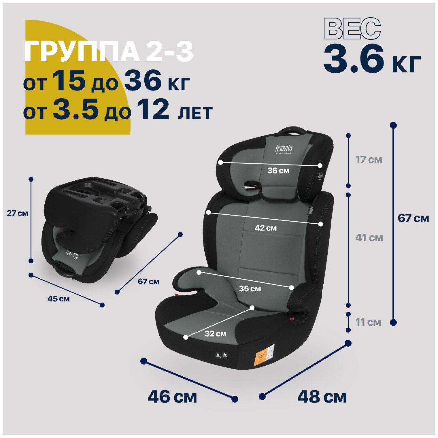 СохранитьАвтокресло трансформер Nuovita Maczione N23-1, группа 2/3, от 3,5 до 12 лет, от 15 до 36 кг (Grigio/Серый) интересное: