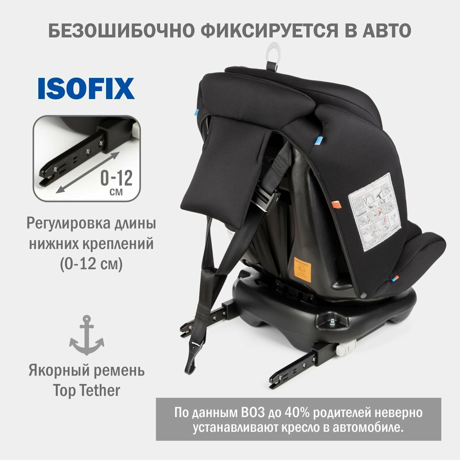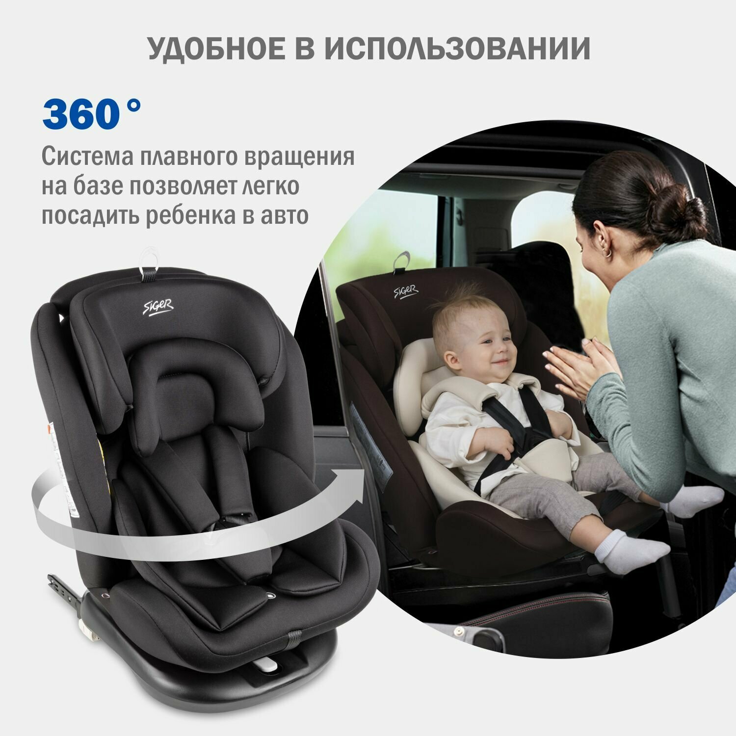 Автокресло детское поворотное с рождения до 12 лет / Isofix / 0+/1/2/3/до 36 кг 0-36кг / 0-12лет, Siger Престиж , оникс