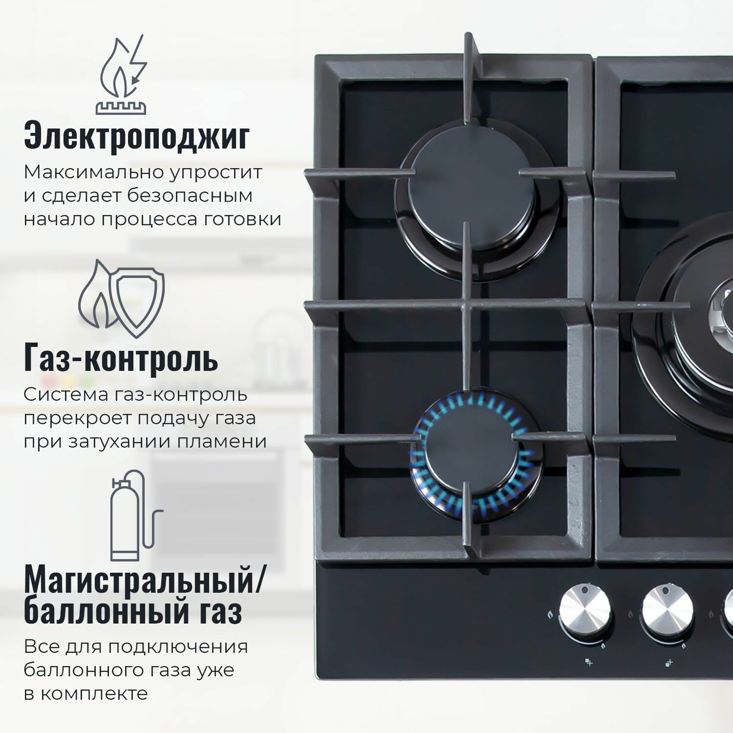 Газовая варочная панель MBS PG-801BL classic, независимая, стекло черное