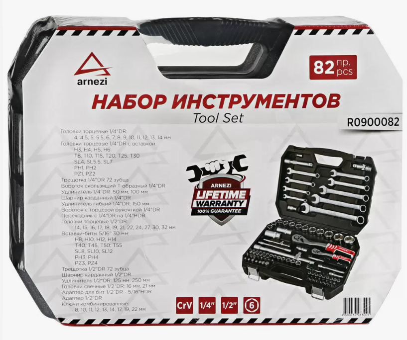 Набор инструментов 82 предмета 1/4DR, 1/2DR ARNEZI R0900082