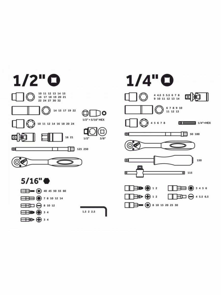 Набор инструментов 1/4", 1/2" 6 граней 108 предметов PRO STARTUL Stuttgart (PRO-108S)