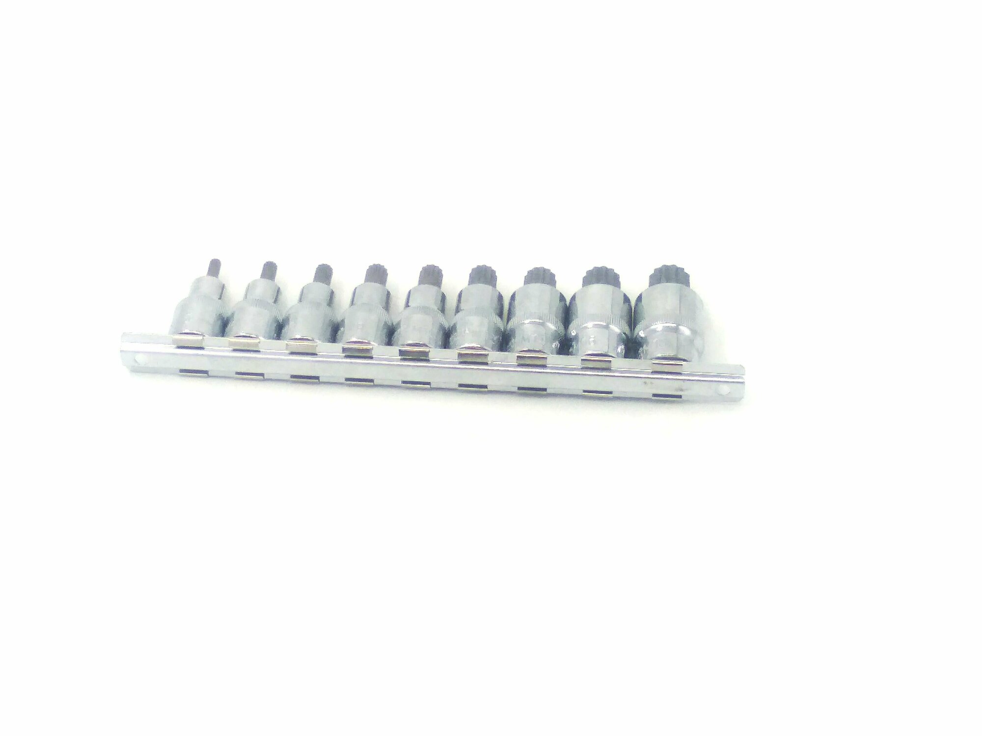 Набор насадок торцевых 1/2"DR с вставками-битами SPLINE на держателе, M5-M18, 9 предметов Ombra