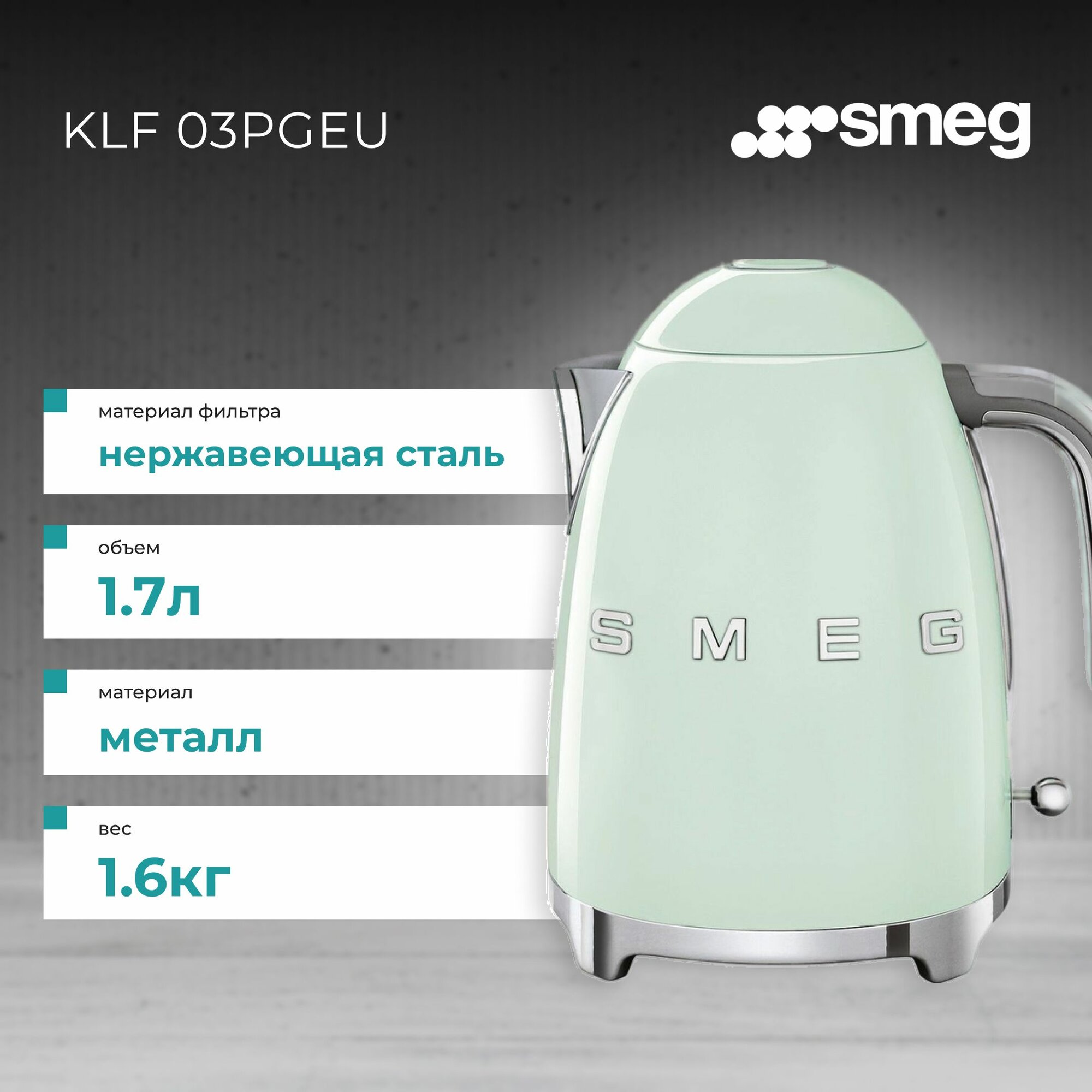 Чайник Smeg KLF03PGEU, пастельный зеленый