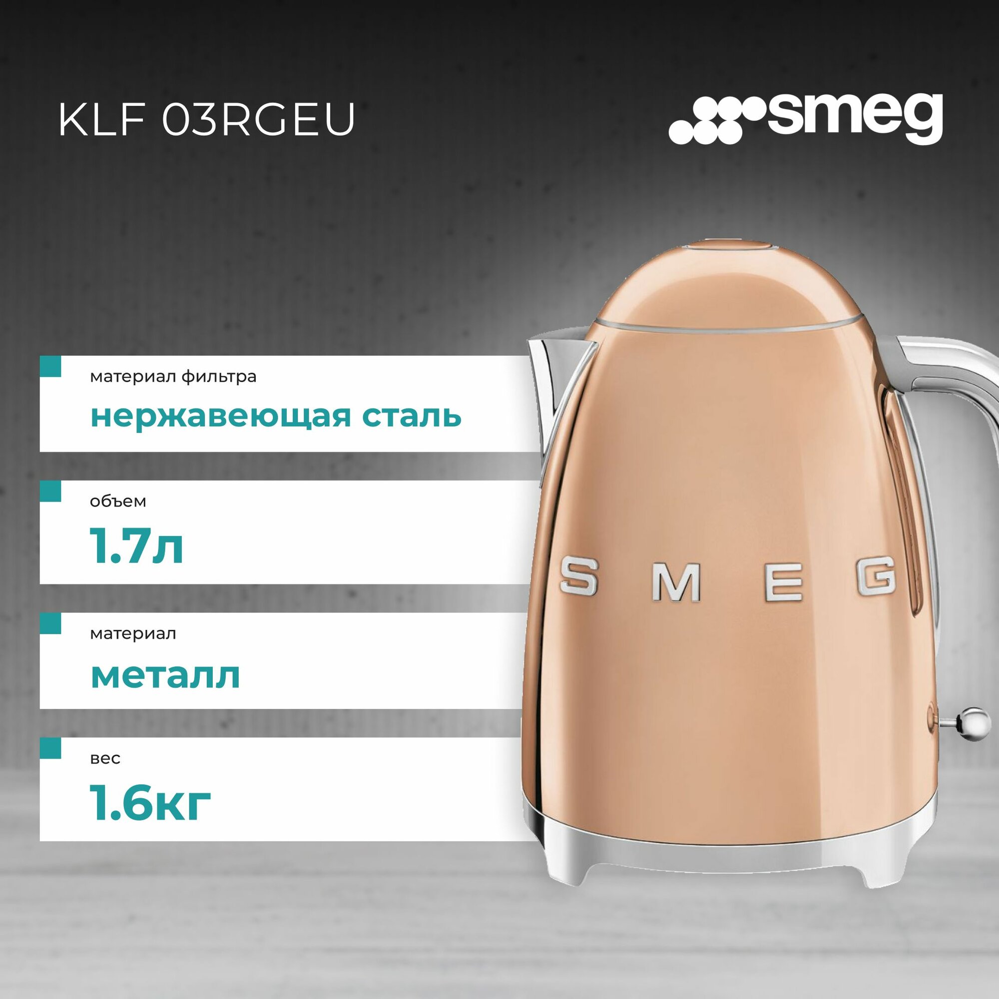 Чайник Smeg KLF03RGEU розовое золото