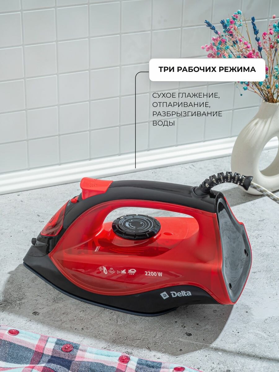 Утюг DELTA, DL-756, 2200 Вт, керам, черный с красным