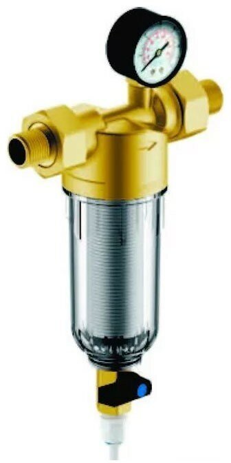 Фильтр для воды промывной с манометром Гейзер-Бастион 112 3/4". Фильтр грязевой для очистки воды из скважины