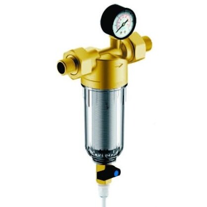 Фильтр механической очистки Гейзер Бастион 112 муфтовый (НР/НР), ПВХ, со сливом, с манометром Ду 20 (3/4")
