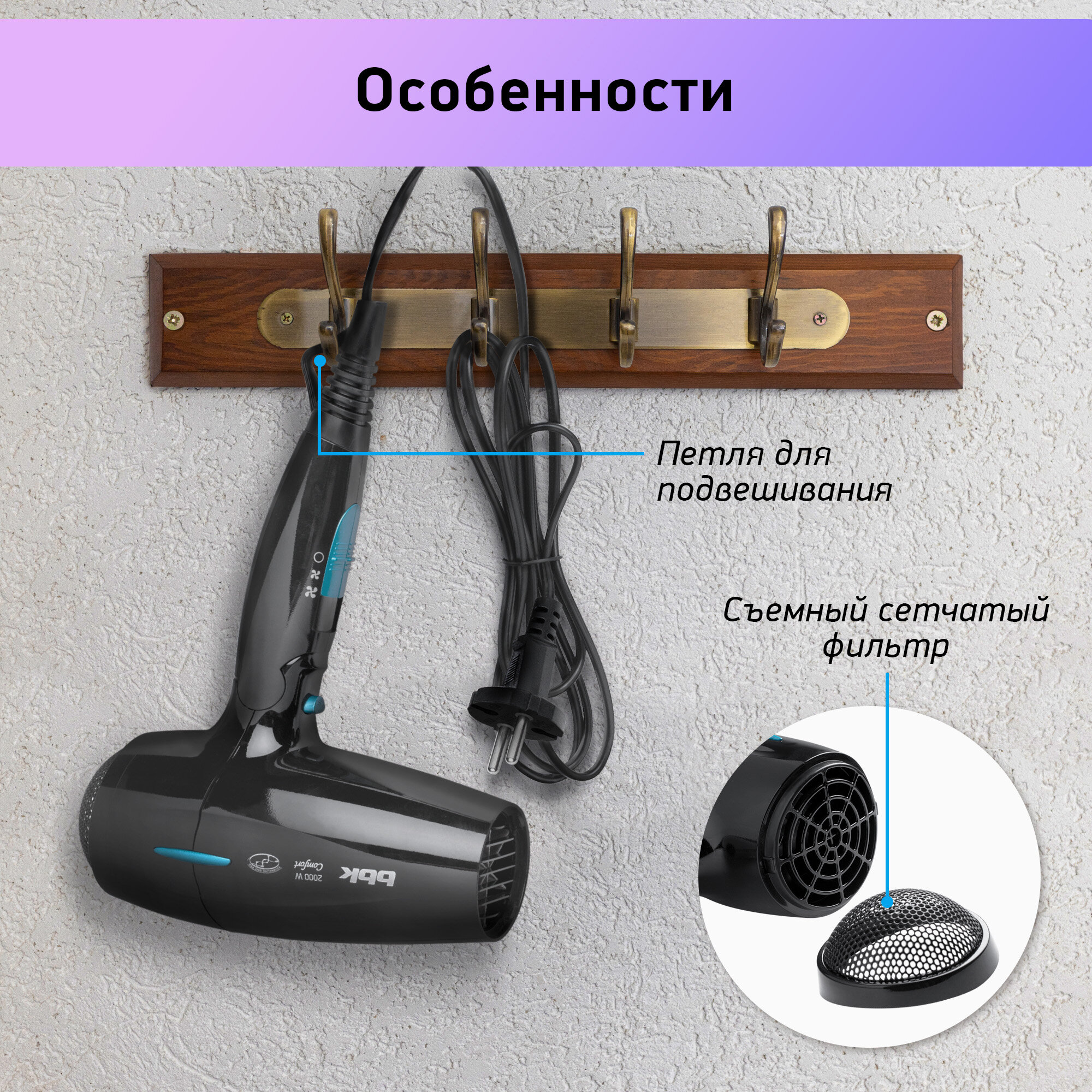 СохранитьФен BBK BHD3201i, черный/голубой интересное: