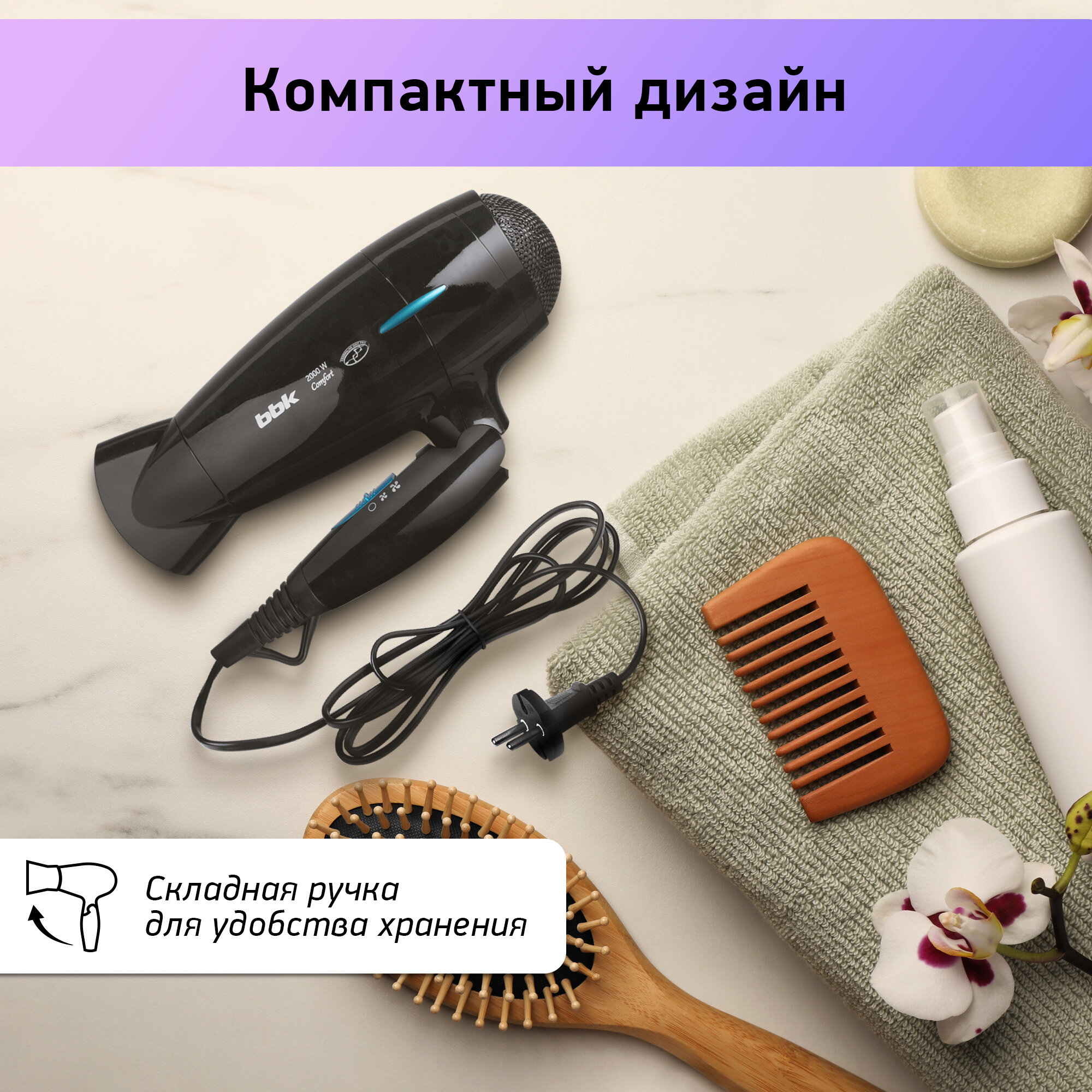 Фен BBK BHD3201i 2000 Вт складной черный, голубой