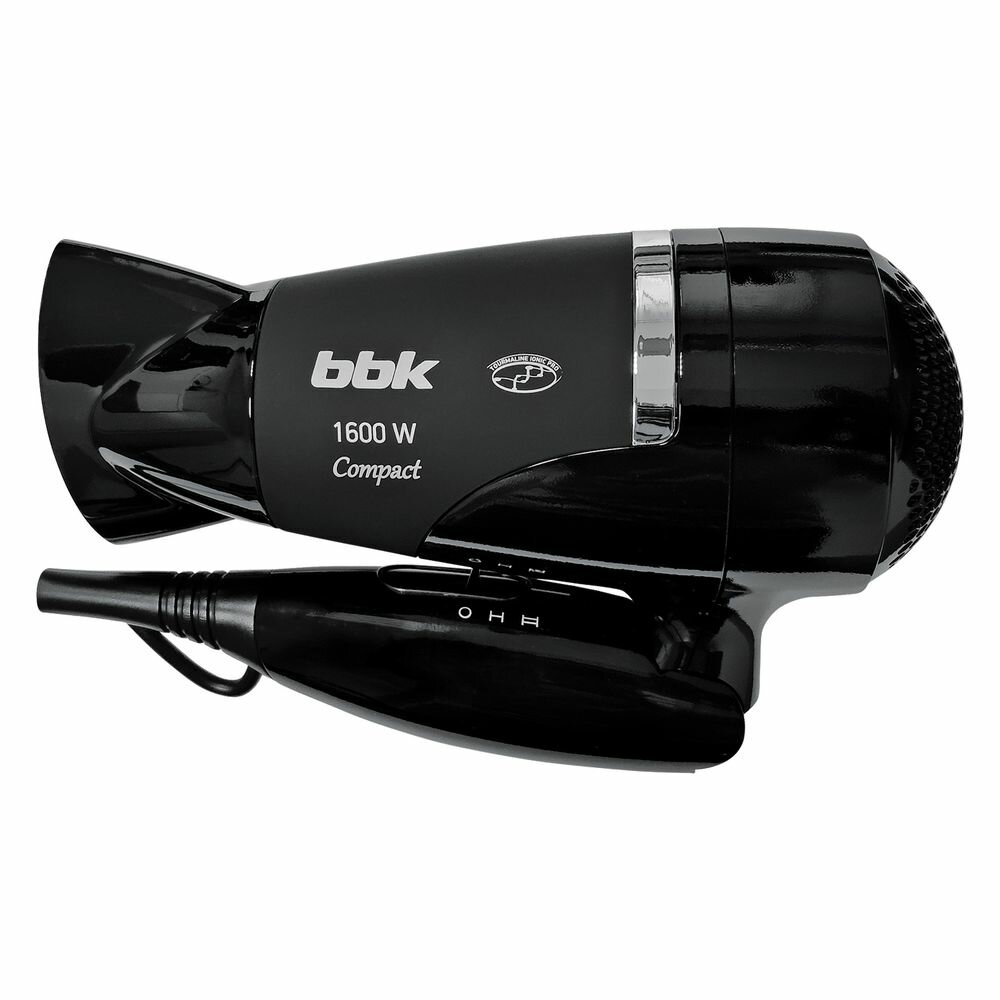 Фен для волос BBK BHD1602i черный, мощность 1600 Вт, 2 температурных режима, 2 скорости, складная ручка, ионизация