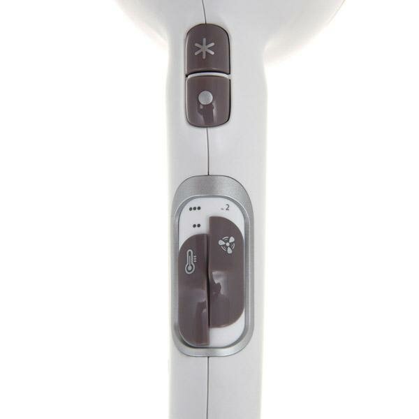 Мотор AC. Как я понял используется безколлекторный мотор, который тяжелее, но зато не имеет износа щеток, как моторы DC - работающие на постоянном токе. Есть сенсорный режим, фен выключается если не держать за ручку. На самом деле не совсем за ручку, а нужно обязательно перекрывать окошко на ручке. Мощный, при этом опять же относительно удобен для персонального использования. Как правило фены такого типа рассчитаны на парикмахеров и неудобны для личного использования. Но всё же фен великоват и не стоит ждать чудес, если до этого был маленький фен. Есть тихие режимы работы, две скорости плюс турбо. На турбо сдувает, но шумит. Нормально держит температуру, странно видеть это в плюсах, но сейчас такое качество у продукции, что уже нормальное функционирование в штатном режиме можно заносить в плюс. Скорость вращения и температура регулируются отдельно. Регуляторы в виде ползунков и не переключаются случайно при удерживании фена. Как я уже отмечал это признак домашнего фена, дома обычно пользуешься одним и тем же режимом всегда. На проф фенах наоборот быстропереключаемые кнопки, которые пригодятся парикмахеру, но дома наоборот мешают. Есть ионизация, опять же реализована по заявлению с помощью генератора, что в отличии от вариантов с турмалиновым покрытием служит пока работает собственно генератор. Как я понял он работает только когда горит голубой индикатор. Соответственно при использовании больших температур или режима турбо индикатор не светится, как бы намекая, что пользы для волос в это время мало. Снимается задняя решетка на магнитах и защелках. Можно легко и быстро почистить вентиляционную решетку. Кому-то может понравиться цвет, в отличии от стандартного черного. Две насадки в комплекте. Шнур не самый короткий. Быстро сушит волосы и не перегревается при длительной работе. |