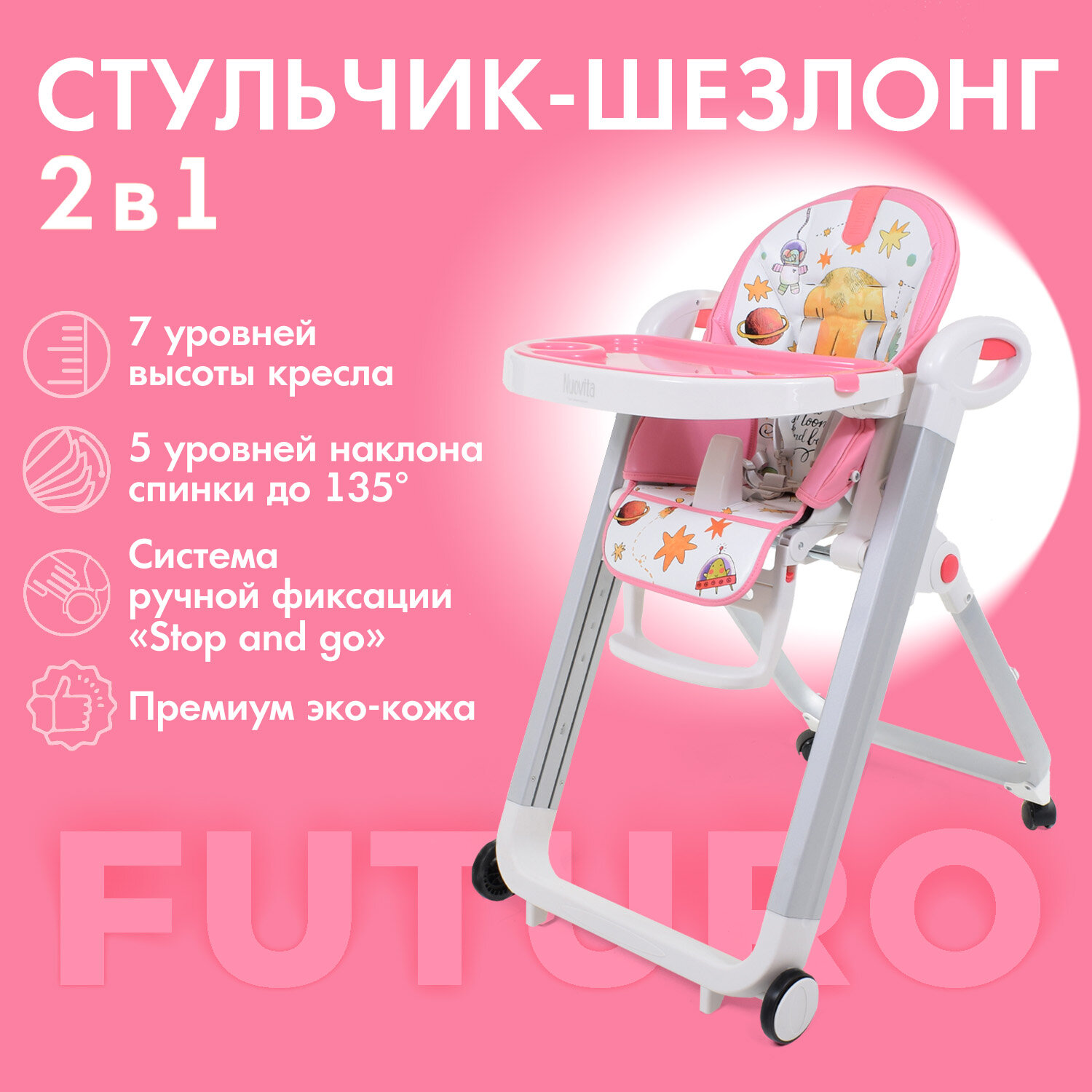 СохранитьСтульчик для кормления Nuovita Futuro Bianco (Cosmo rosa/Розовый космос) интересное: