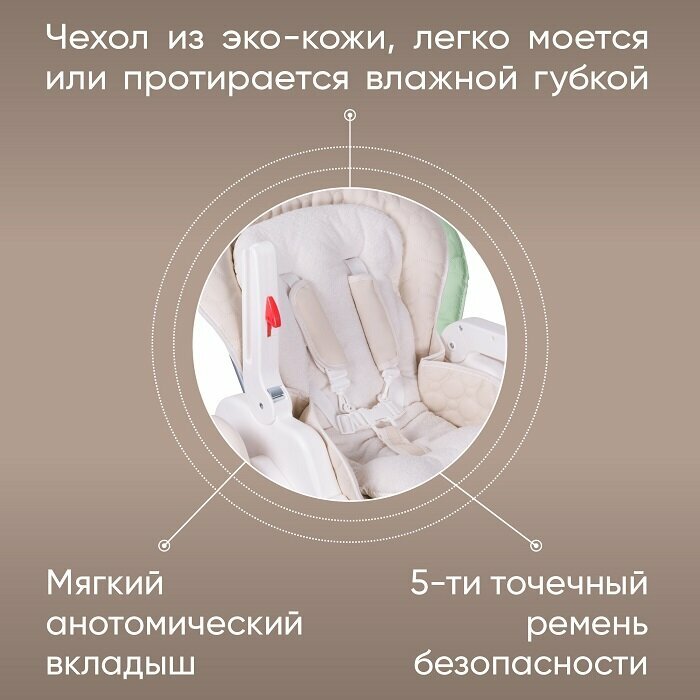 В комментариях читала, что нет возможности снять для чистки сиденье из кожзаменителя - это не так. Немного сноровки, и все аккуратно снимается - матрасик с ремнями стирала с стиральной машине (ничего не вытянулось, не растянулось и не полиняло), чехол - хорошенько промывала. |
