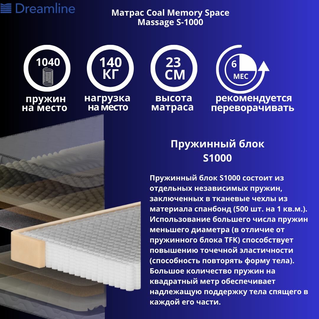 Матрас Дримлайн Coal Memory Space Massage S-1000 150х210х23