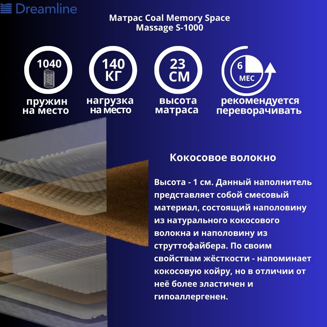 Матрас Дримлайн Coal Memory Space Massage S-1000 120х210х23