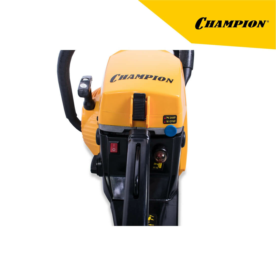| Особенности | Инерционный тормоз цепи и уловитель цепи - безопасность оператора; Блокировка курка газа - защита от повторного пуска; Воздушное охлаждение двигателя; Облегченный доступ к воздушному фильтру; Регулируемая автоматическая система подачи масла на цепь и шину; Эргономичная рукоятка Champion 256-18"; Топливо: смесь бензина АИ-92 и масла для двухтактных двигателей в соотношении 50:1. |