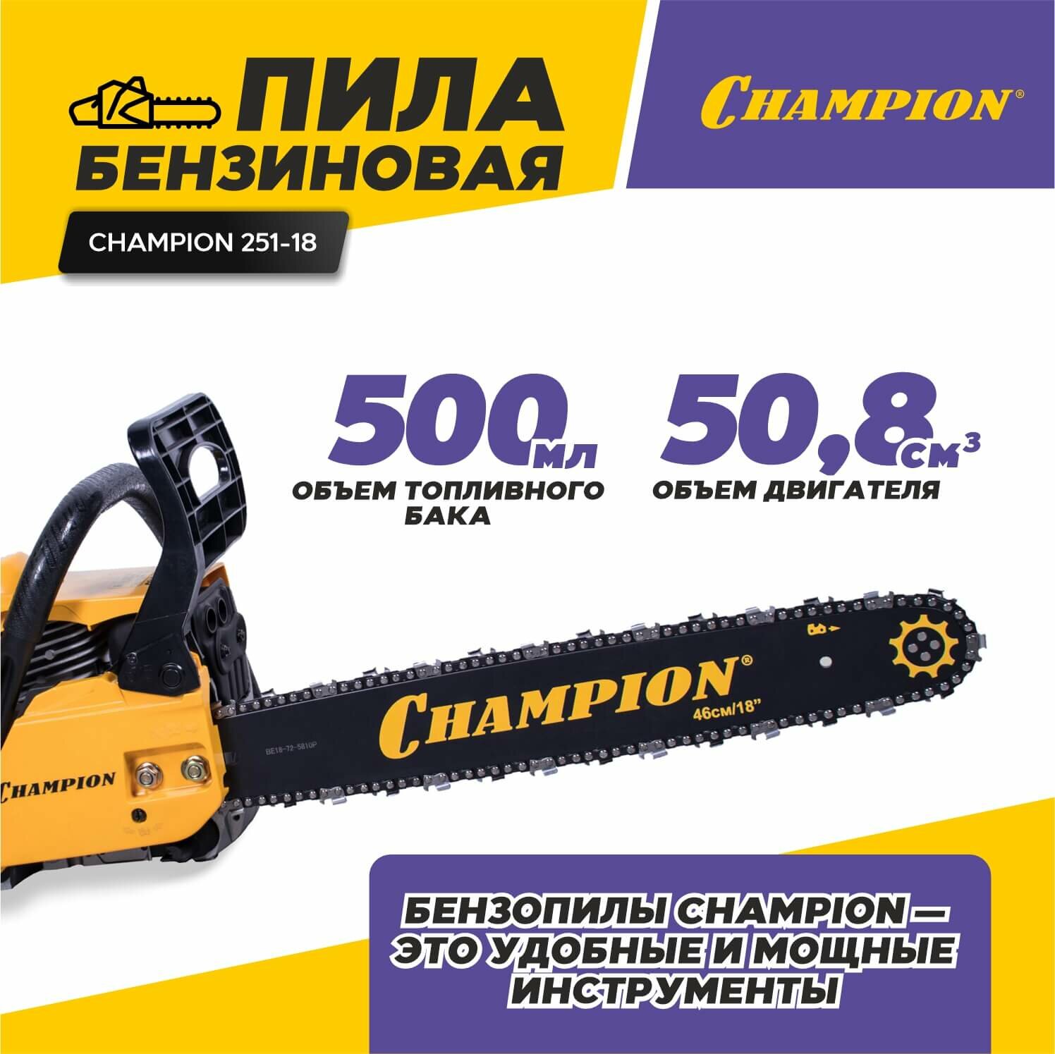 Бензопила Champion 251-18 (акция*") CHAMPION