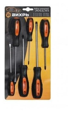Набор отверток вихрь 73/6/2/13, 6 предм., черный/оранжевый