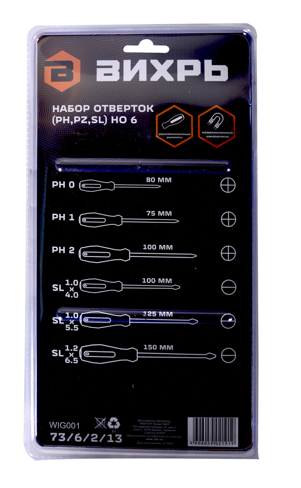 Набор отверток (PH PZ SL) но 6 Вихрь 73/6/2/13