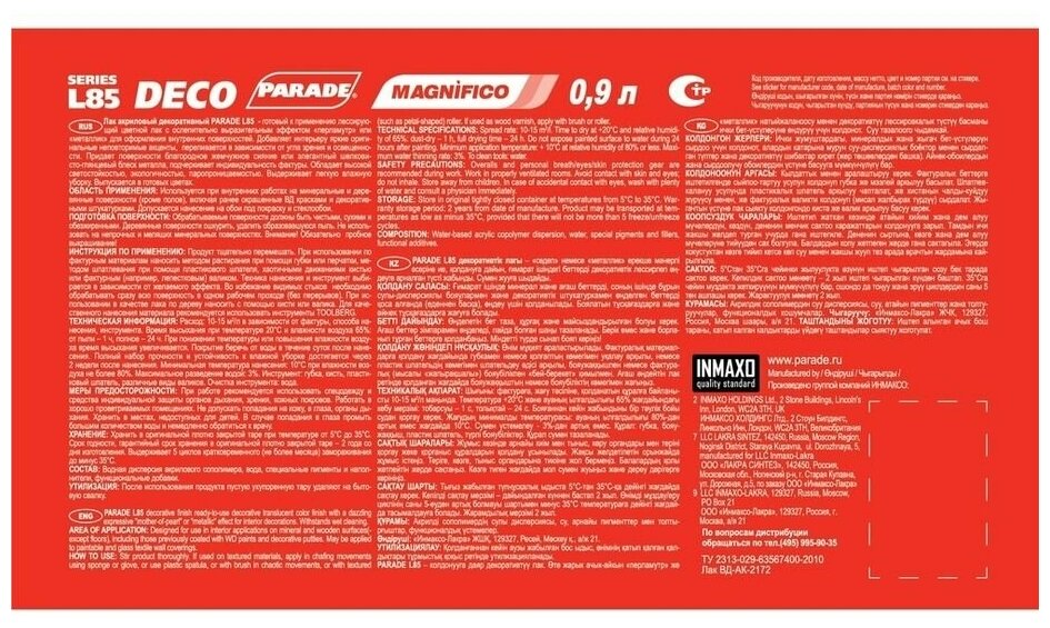 Декоративный лак PARADE DECO Magnifico L85 Жемчуг 0,9л Россия