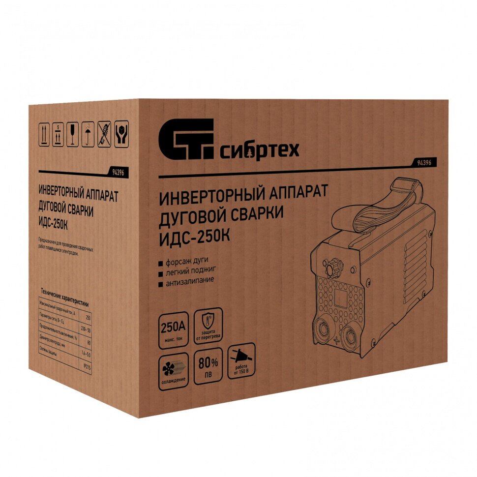 Купить Инверторный аппарат дуговой сварки ИДС-250K, 250 А, ПВ 80%, диаметр электрода 1,6-5 мм Сибртех 94396