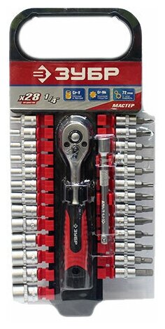 ЗУБР ТР-28, 28 предм., (1/4″), набор торцовых головок, Профессионал (27645-H28)
