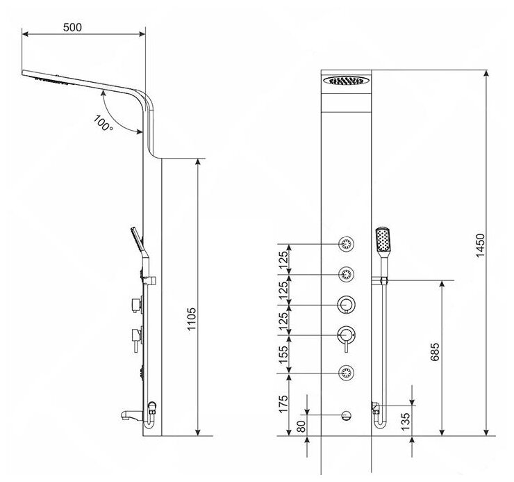 | Длина душевой панели | 1500 мм |