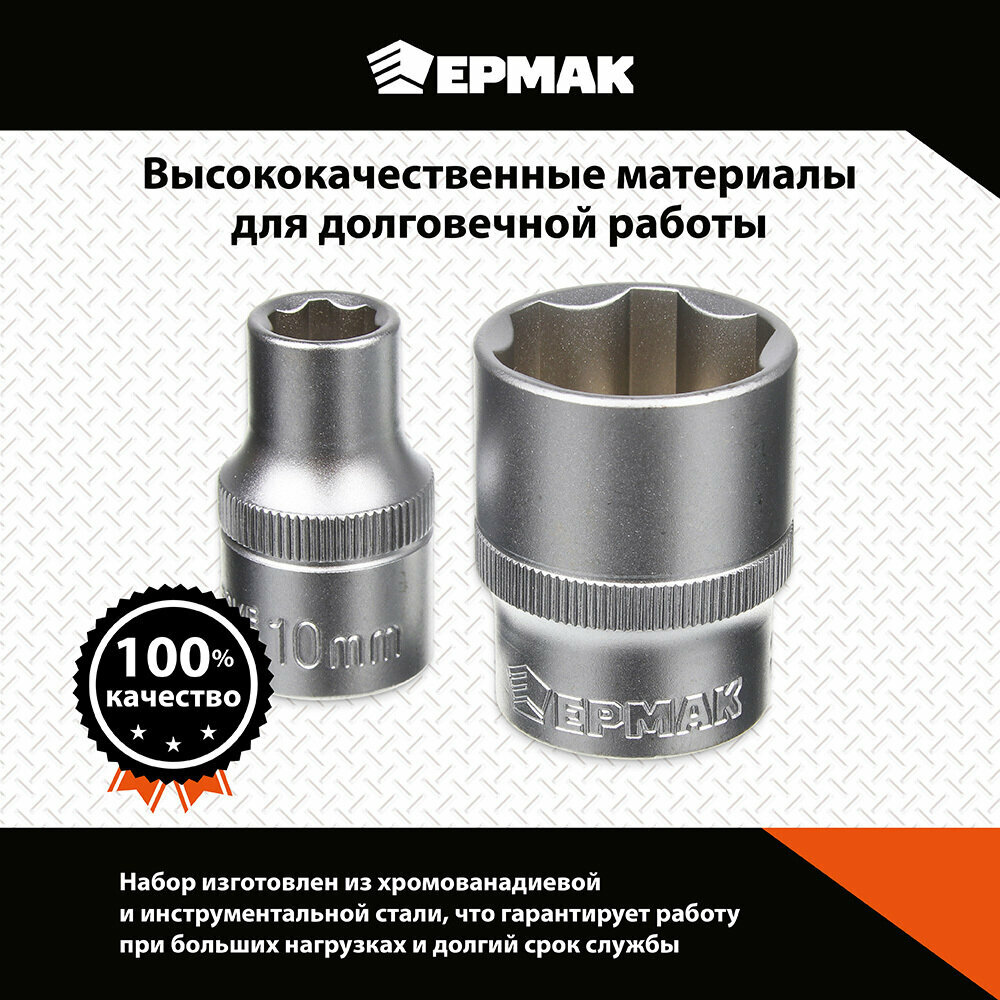 Ермак Набор профессионального инструмента, 19 предм., 1/2" (головки и трещотка)