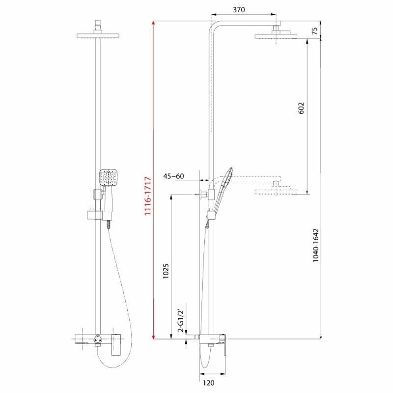 | Дополнительная информация | высота стойки для душа: 1717 мм; длина верхнего душа: 185 мм; ширина верхнего душа: 245 мм |