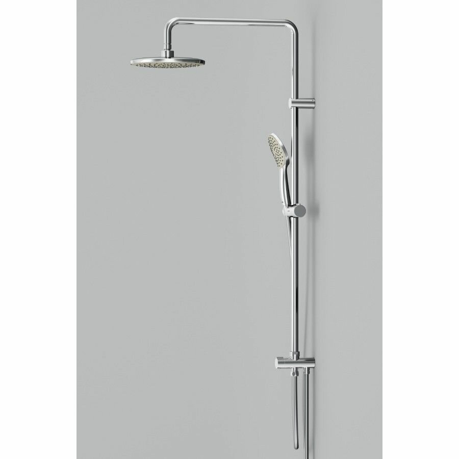Душевая система с тропическим душем без смесителя AM.PM Gem F0790000 хром, душевые системы для ванны, поворотный верхний душ 220мм, лейка 110мм, 1 режим, регулировка высоты штанги, Германия