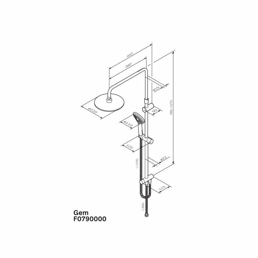 F0790000 Gem душ.система, набор: верхн.душ d 220 мм, ручн.душ 1 ф-ция d 110 мм, переключатель, хром,