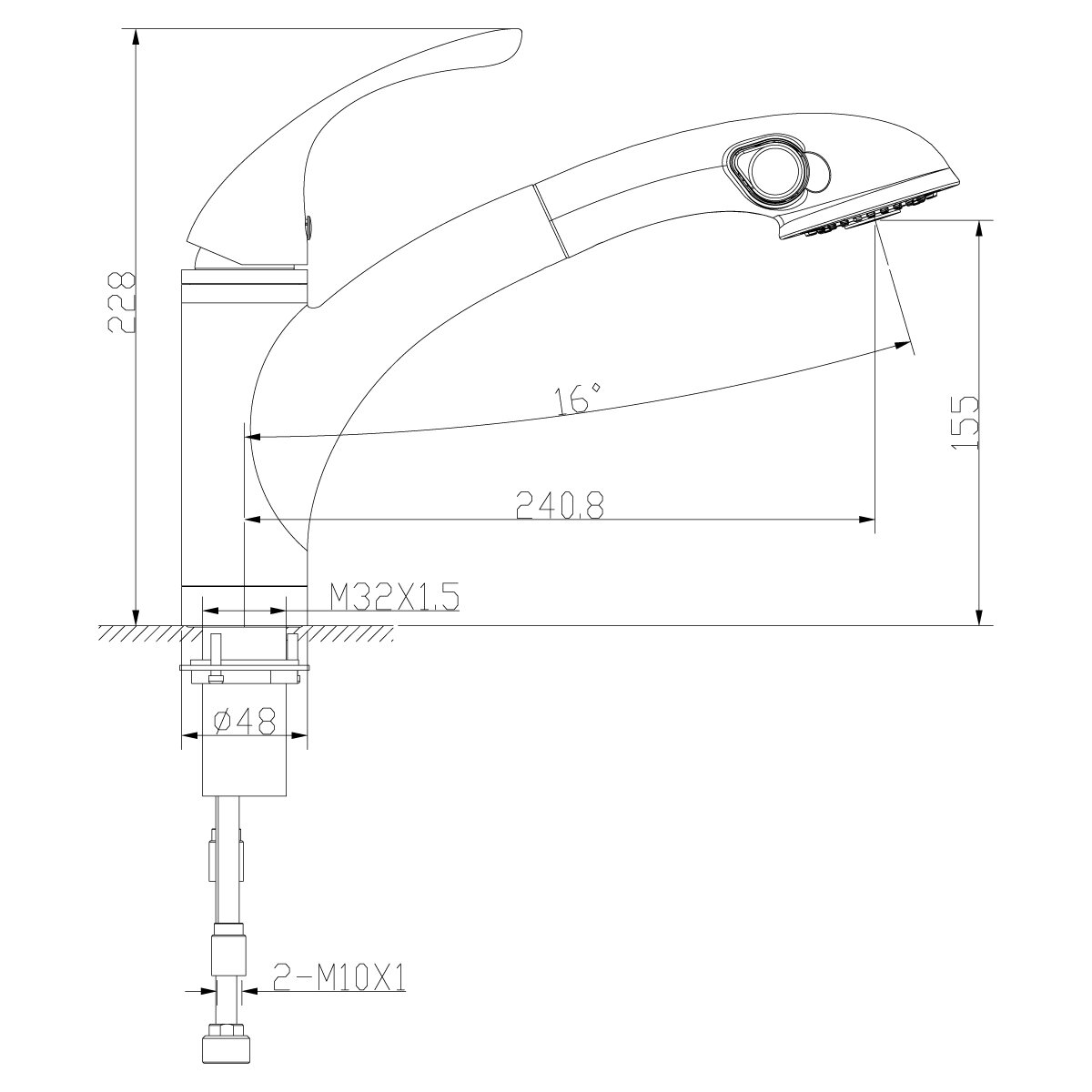 | Высота излива | 155 мм / 228 мм |