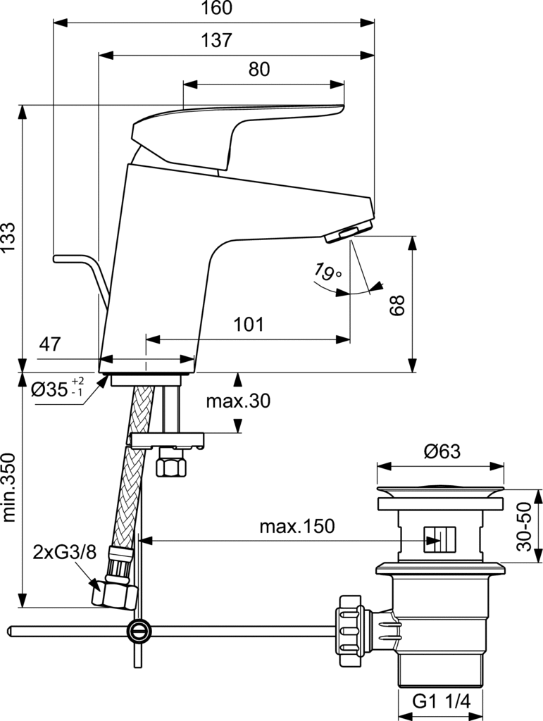 Смеситель для раковины Ideal Standard Ceraflex с донным клапаном B1707AA