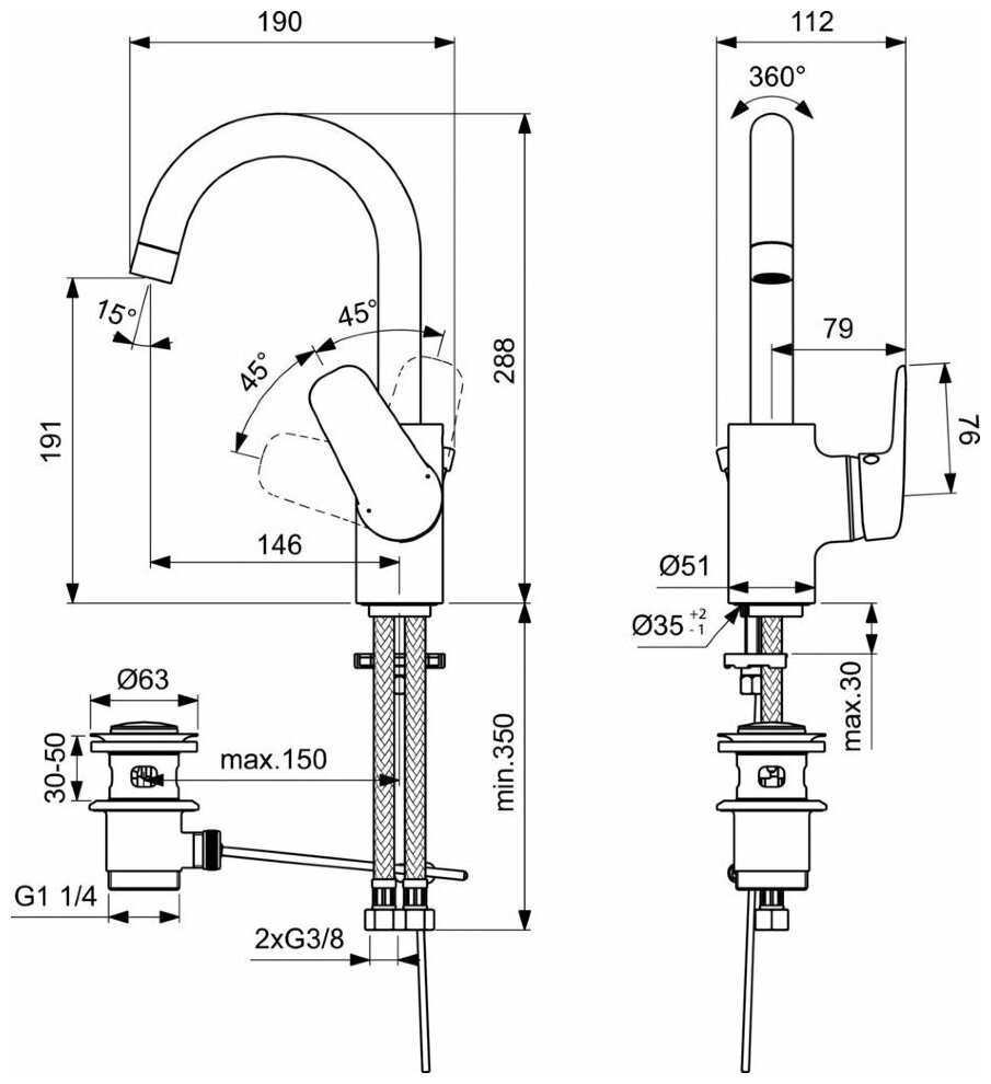 | Длина излива | 146 мм |