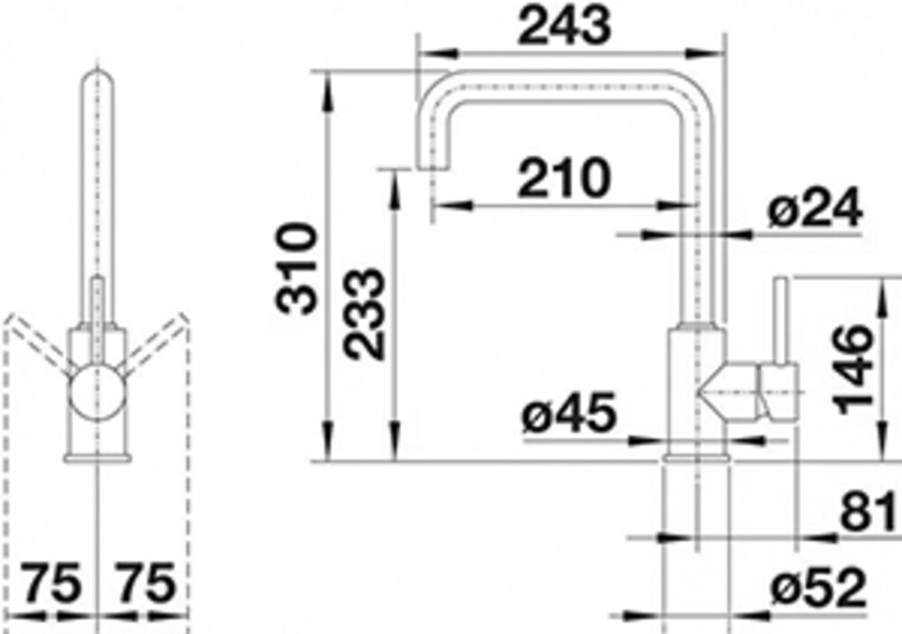 | Высота излива | 233 мм / 310 мм |
