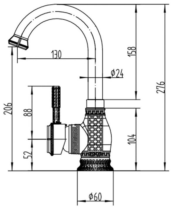 Смеситель Zorg серия Antic A 207U-BR для раковины, латунь бронзовый, ретро, с орнаментом, одноручковый, поворотный, классический