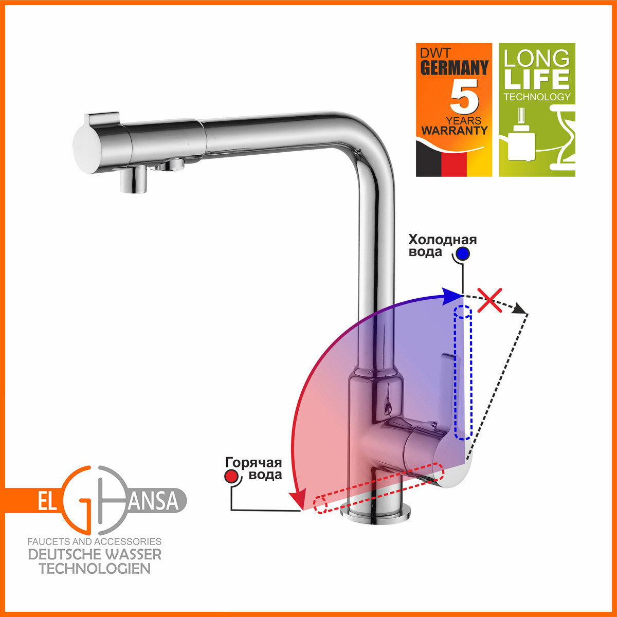 СохранитьСмеситель для кухни под фильтр Elghansa 5698224,хром интересное: