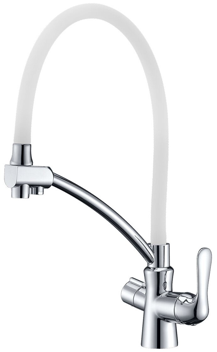 Смеситель для кухни с гибким изливом и подключ. к фильтру пит.воды хром/бел Комфорт LM3070C-White