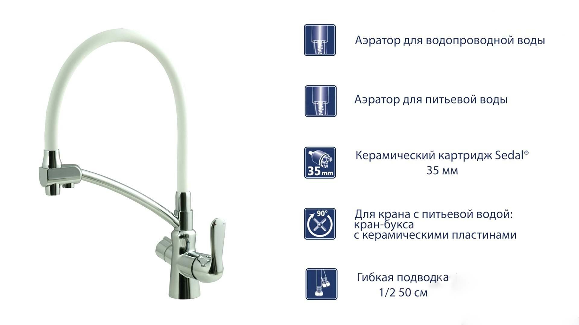 Смеситель Lemark Comfort LM3070C-White для кухни с подключением к фильтру питьевой водой, хром белый .