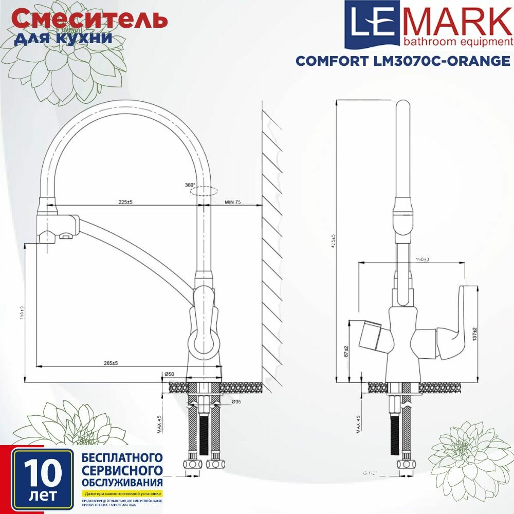 LEMARK Comfort LM3070C-Orange для кухни с подключением к фильтру с питьевой водой (хром)