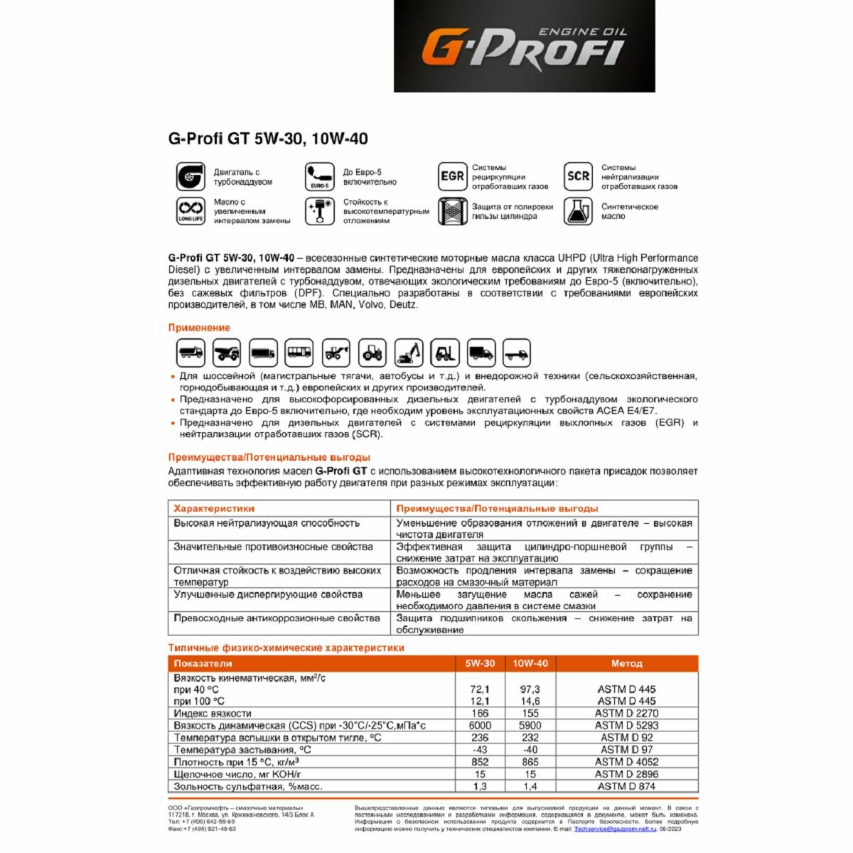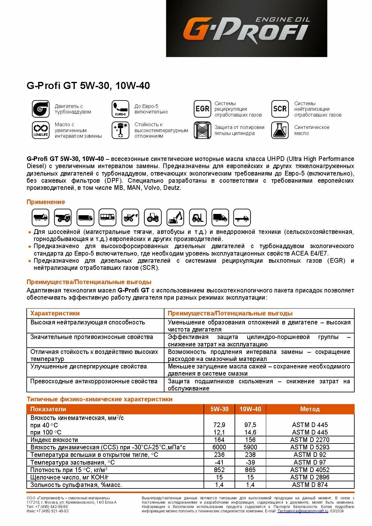 G-Energy G-Profi Gt 10w40 Ci-4 E4/E7 205л. Синт. Мотор. Масло (Rus) Mb228.5; Man М3277, M3377; Volvo Vds-3; Cummins Ces 20078...