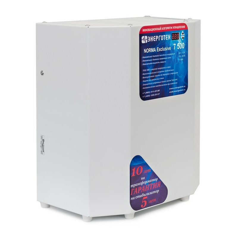 Стабилизатор напряжения однофазный Энерготех NORMA Exclusive 7500 серый 7500 ВА