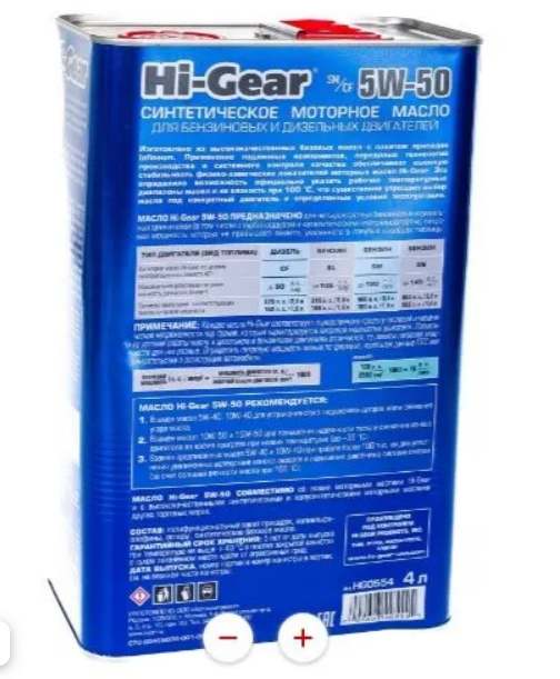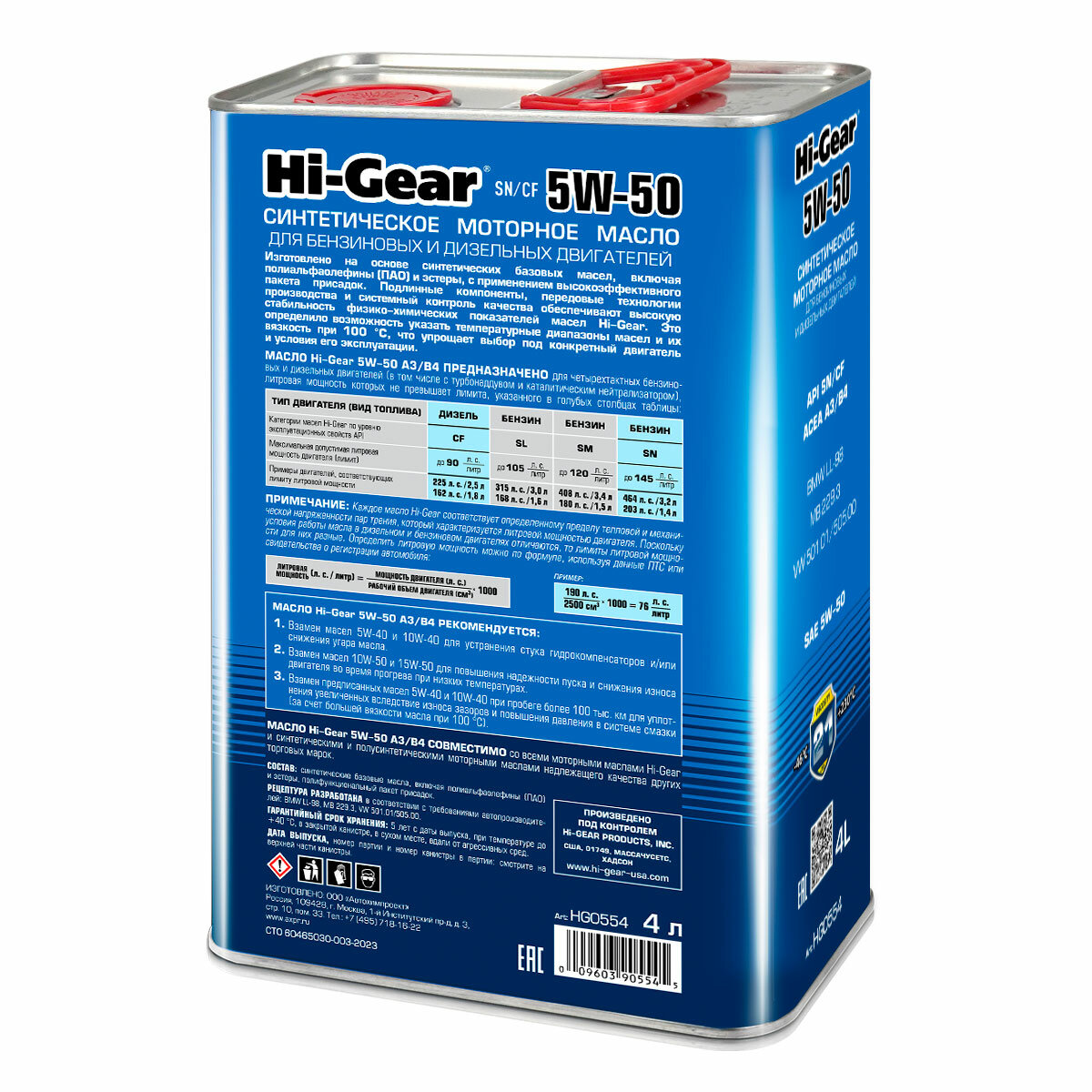 Моторное масло Hi-Gear 5W50 SM/CF, 4л (арт. HG0554) HG0554