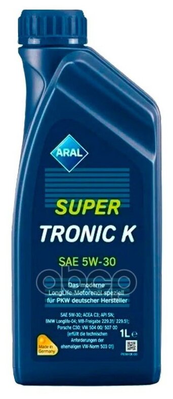 Купить ARAL Масло SuperTronic K 5W-30 1л SN C3 BMW Longlife-04 MB 229.31 MB 229.51 Porsche C30 VW 504.00/507.00 1шт
