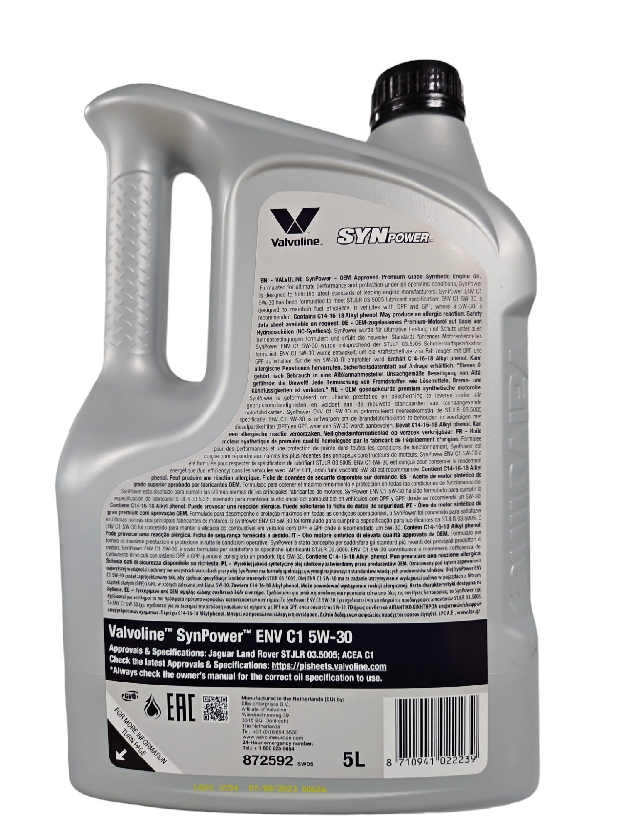 872592 VALVOLINE Масло мотор. SYNPOWER ENV C1 5W30 4/5 L SW