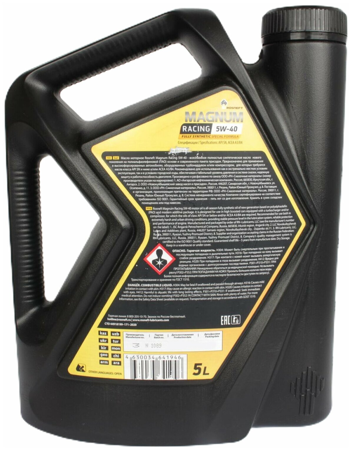 Синтетическое моторное масло Роснефть Magnum Racing 5W-40, 5 л, 4.6 кг, 1 шт